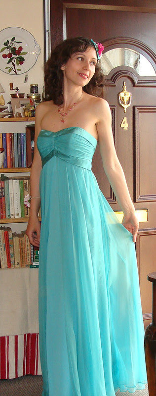 - it is extremely long, so I'd have to choose between shortening it a little bit or wearing painful platforms (I do in the photos and you can't see my feet, which I guess is a good thing as they are not the very best shoes for the dress);  overall it is likely to be the least comfortable to wear option out of the three.